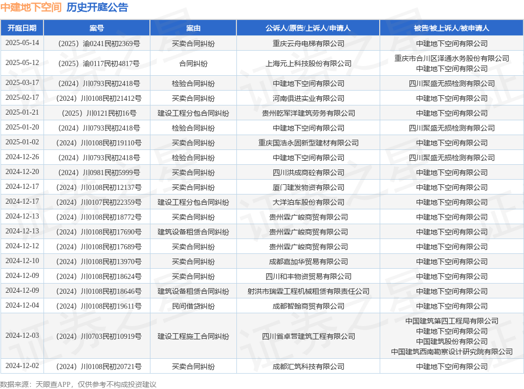 本站消息中博策略,根据天眼查APP显示,近日公布了一则中建地下空间有限公司作为被告/被上诉人的开庭公告,详细内容如下: